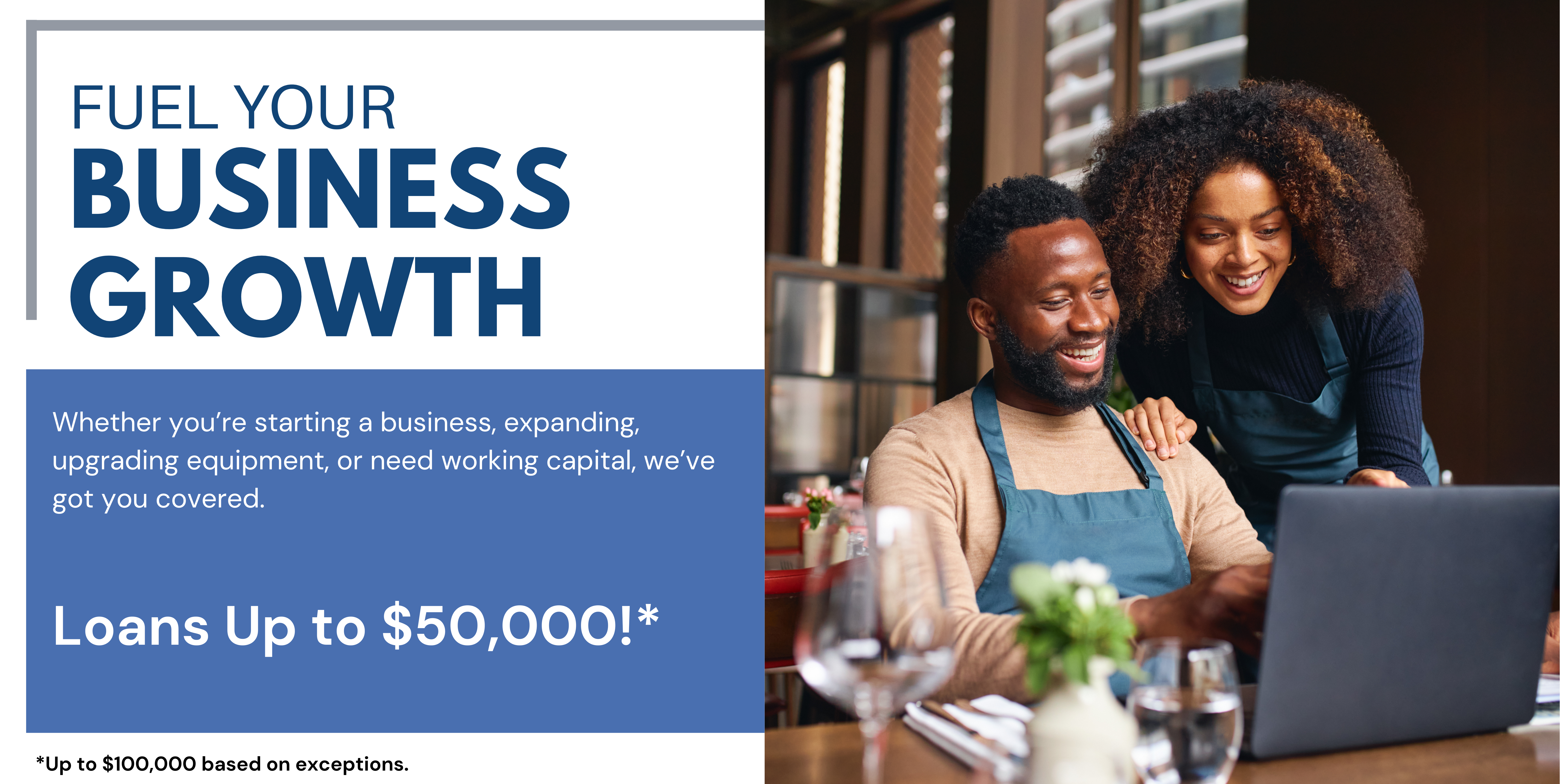 Small Business Loans for working capital, machinery/equipment, fixed assets, façade improvement, franchise startup funding post franchise award, non-profit loans for established organizations, and Bay Area relocation loans. Small business loans range from $5,000 to $100,000 with $150 up-front loan application fees and 2% origination fees at closing.